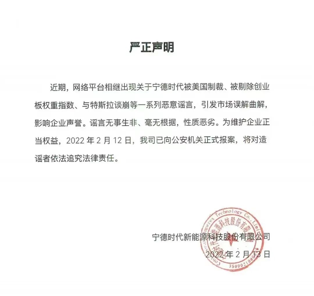 从宁德时代发表的声明来看,似乎是被谣言恶意做空了。