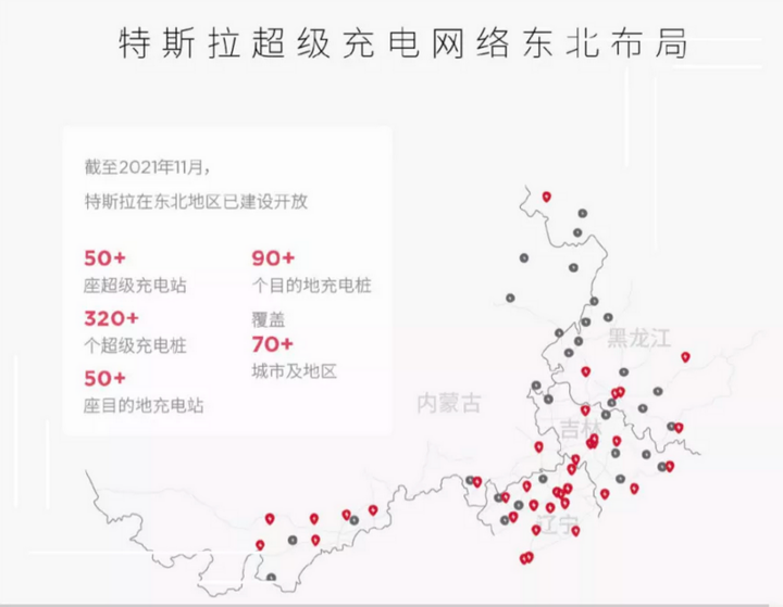 去年年底,特斯拉中国充电团队通过社交平台,对外公布了东北地区特斯拉超充的部署情况。