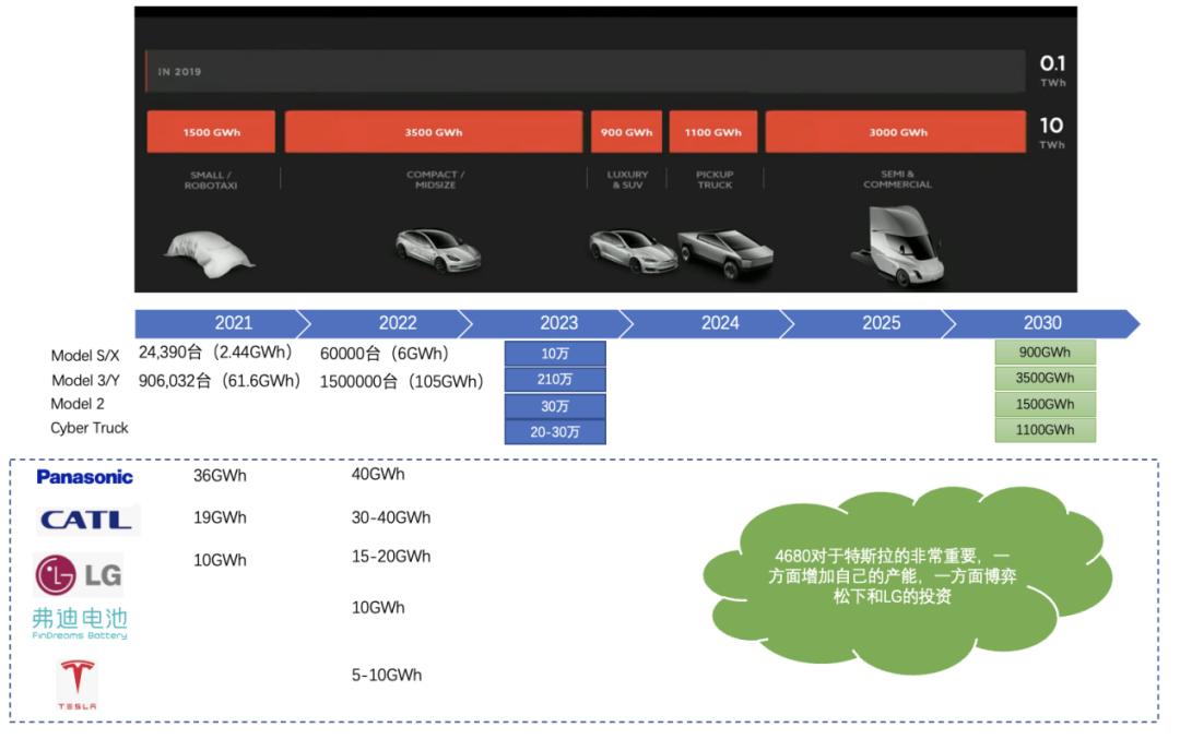 10TWH的累积需求是特斯拉的底气,再加上自产4680,特斯拉可以灵活配置各个基地的高低配版本的电池采购。