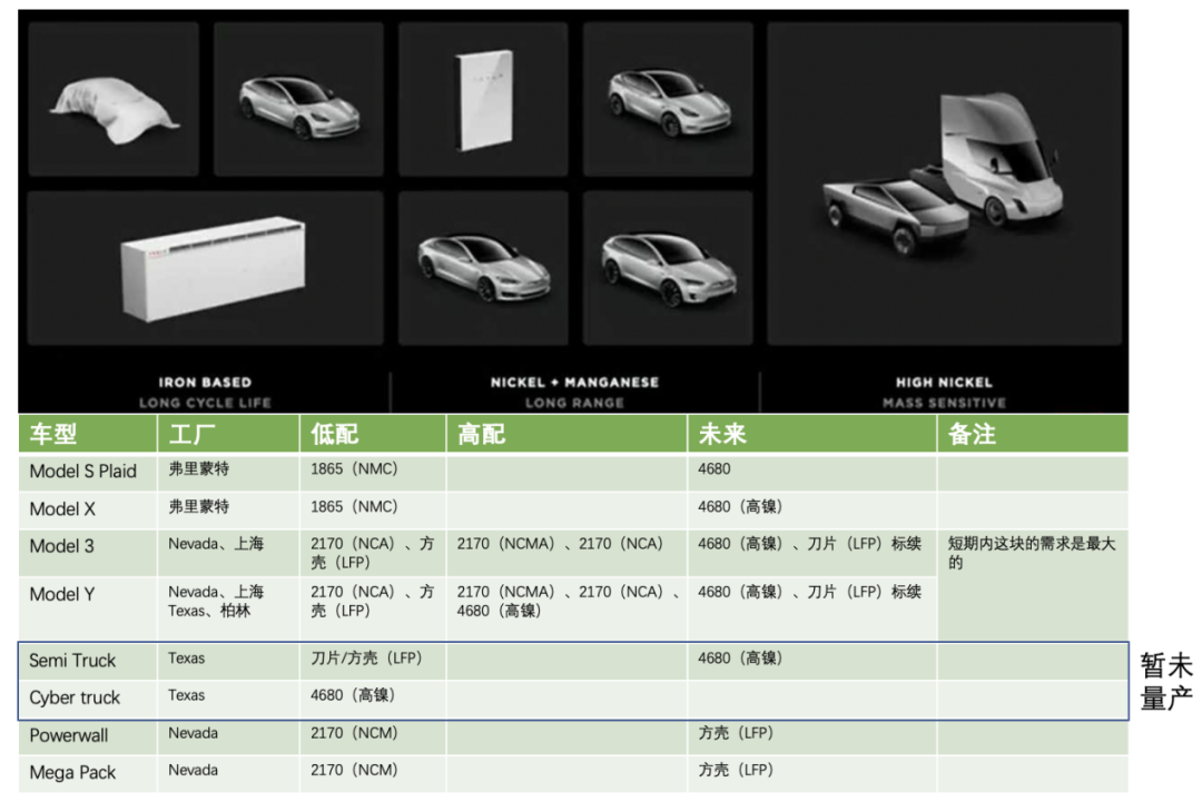 由于大规模量产时间点较晚,这使得特斯拉当前继续沿用2170和宁德时代铁锂方案,电池整体更新的速度比其他车企要慢一些。