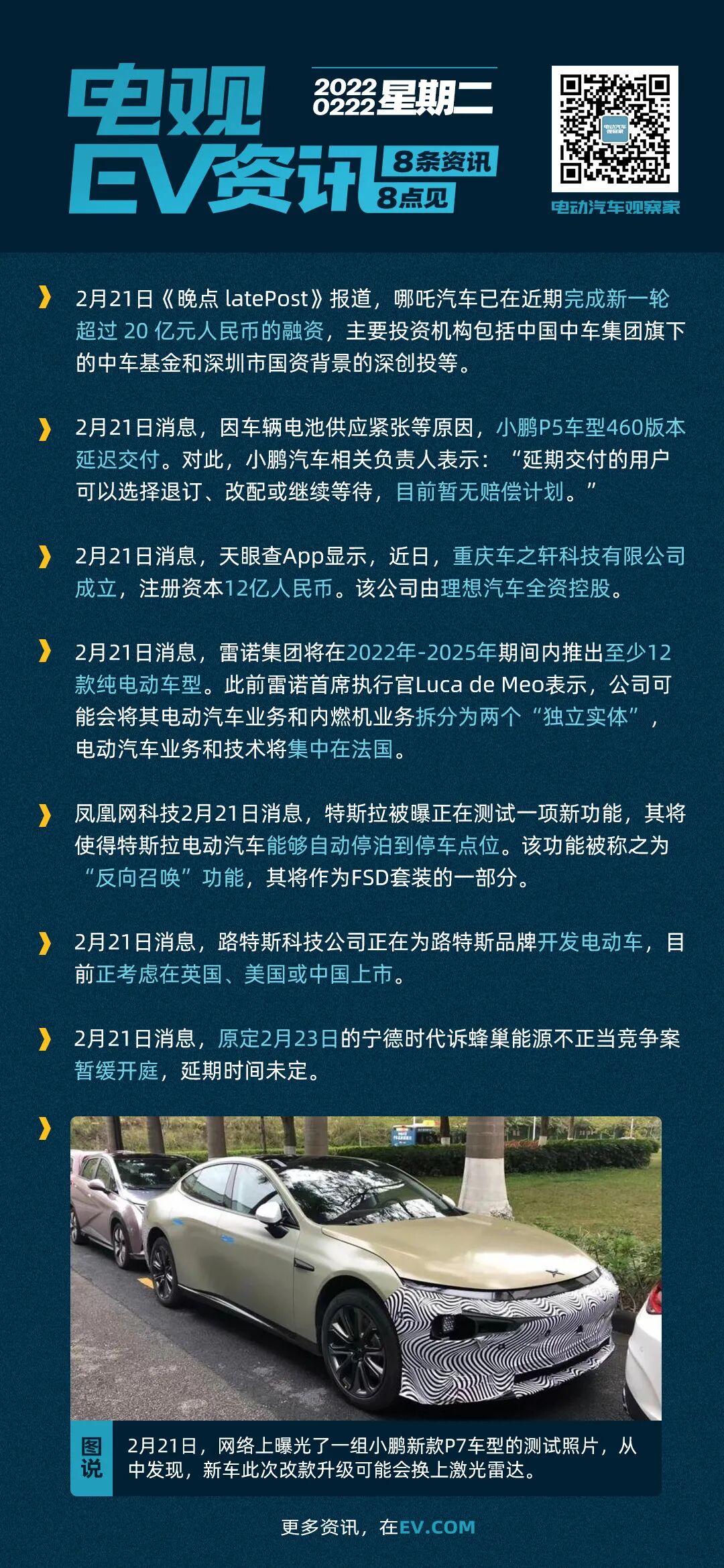 ■2月21日《晚点 latePost》报道,哪吒汽车已在近期完成新一轮超过 20 亿元人民币的融资,主要投资机构包括中国中车集团旗下的中车基金和深圳市国资背景的深创投等。