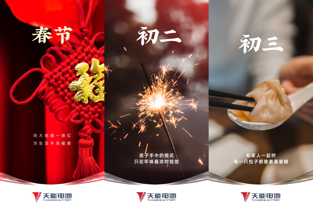 海报之外,天能也会借助特定宣传话术为品牌相关元素贴上节日标签,将品牌同春节场景串联起来。例如天能就多次推出吉祥物泰博新春版形象,以更具中国风、更萌趣的设计搭配“恭喜发财”“年年有余”等春节文案,创造了一个个好看又好玩的内容营销切面。