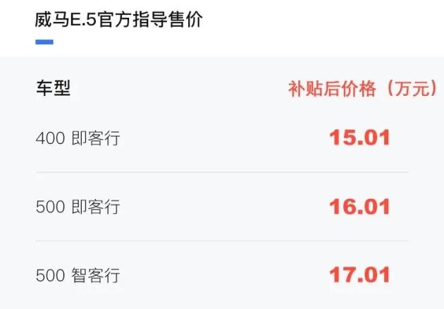 日前,威马官方显示,威马E.5新增410km续航车型400即客行,售价15.01万元。此外505km的两个续航版“500即客行和500智客行”售价也上调了1万元。LG新能源(LG Energy Solution)已开始接受投资者认购,计划1月27日登陆韩国交易所开始交易,计划融资最高108亿美元,可能成为韩国有史以来最大的首次公开募股(IPO)。日前,我们从官方获得了哪吒S的内饰预告图。新车将延续家族式的科技感风格,预计智能配置将成为亮点。根据此前消息,哪吒S是哪吒旗下全新纯电动轿车,或将在2022年年底正式上市。4、smart EQ forfour电动汽车宣告停产日前,外媒报道,smart EQ forfour已经宣告停产,仅保留smart EQ fortwo车型。smart EQ forfour车型在8月份以后就无法预订,这款车型最早于2017年推出,并在2019年推出了改款车型,其电池容量为17.6kWh,最大功率为60kW。近日,据外媒爆料,大众Aero B在瑞典北部进行冬季测试的谍照曝光。新车基于大众MEB平台打造,是大众首款三厢纯电动轿车,或将于今年年底或 2023年初首次亮相该车,并采用ID 命名。1月4日,极星2 推出“购车立享5000元补贴卡”等一系列限时优惠政策,截止3月31日有效。国补退坡,极星2 上周对单电机两版本上调5000千元,售价25.78万元起,如今推出5000元补贴卡,一定程度上在缓冲补贴退坡。7、标称续航1008km,广汽埃安LX PLUS将于1月5日正式上市近日,广汽埃安官方宣布,旗下全新纯电SUV车型AION LX PLUS将于2022年1月5日正式上市。新车已在11月份开幕的广州车展上亮相,最大亮点是拥有1008km的续航里程,0-100km/h加速时间仅需2.9秒。近日,有消息称,丰田bZ4X将会在今年正式国产并上市,并且会采用双车战略,分别由一汽丰田和广汽丰田进行国产化生产。新车是丰田 bZ纯电动专属系列的首款纯电动中型SUV,在2021年广州车展上,广汽丰田bZ4X PROTOTYPE首发亮相,将于2022年初上市。近日,红旗MPV的路试谍照曝光,尾部细节首次得到公开。新车或将在今年6月份开始启动量产工作,有望于下半年上市。近日,我们从相关渠道获得了宝马XM最新谍照,新车是一款由宝马M部门独立研发打造的高性能PHEV概念车,采用了“X+M”的全新命名形式,迎接宝马M成立50周年,并将会在2022年内开启量产。![]()