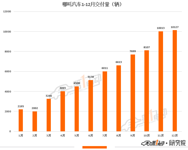 哪吒汽车12月交付10,127台,同比增长236%,连续月销破万。2021年哪吒汽车累计交付69,674台,同比劲增362%。哪吒V车系12月交付5,280台,哪吒U Pro12月交付4,847台,环比增长62%。截止目前,哪吒汽车线下渠道达331家,涉及25个省,193个城市。截至11月,哪吒汽车已在全国150个城市完成哪吒加电布局,免费充电站1637座、直流电充电桩19663根,覆盖95%以上用户使用区域。2021年12月,威马汽车交付智能纯电车5,062辆。2021全年交付量44,157辆,接近过去三年累计交付总和。2021年四季度累计交付量达15,114辆,创单季度销量历史新高。交付至今,威马汽车已累计交付智能纯电车88,686辆。截至2021年末,威马汽车已接入超44万根充电桩,覆盖含香港在内的全国32个省级行政区,361座城市,在全国公共充电桩总数的占比达到40%以上。零跑汽车2021年12月交付7,807台,环比增长39%,同比增长368%;全年累计交付达43,121台。其中,零跑T03 12月单月交付量达到5627台,全年累计交付38463台。日前,2022款零跑T03上市,随着新车的上市,零跑汽车的销量还将再创新高。作为零跑汽车最新自研成果集大成者,零跑C11 2021年10月开始交付至今,累计交付4,021台。![]()
