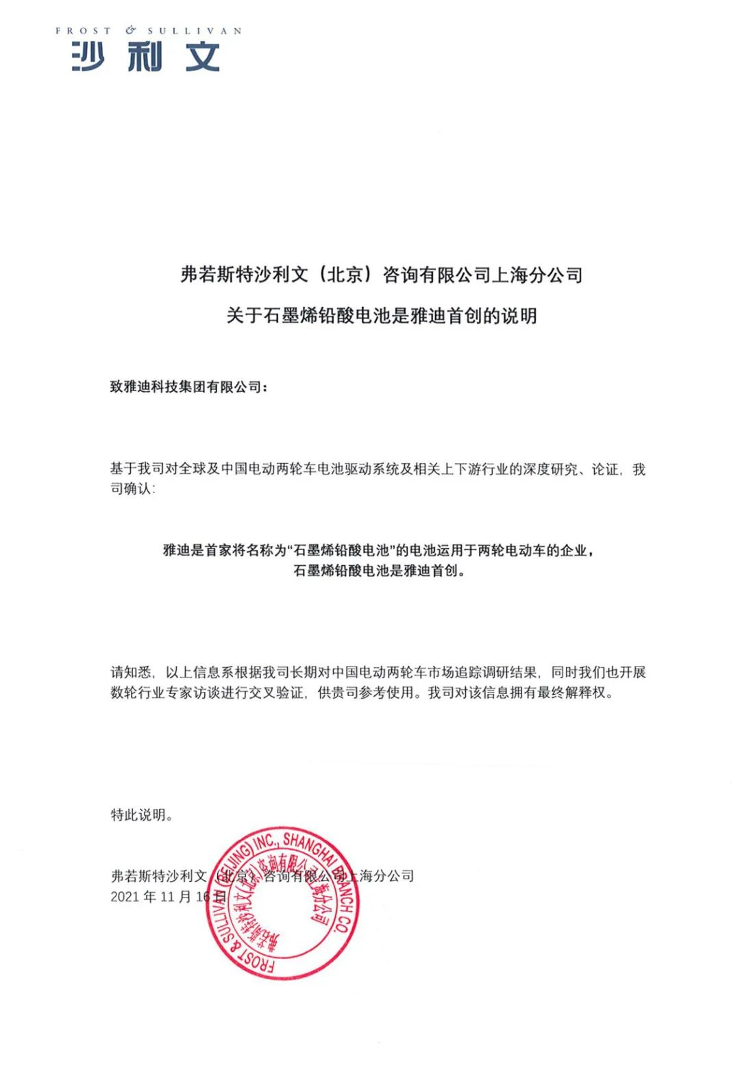 众所周知,石墨烯被称为“改变21世纪”的完美超导材料,是由安德烈.海姆在2004年与康斯坦丁.诺沃肖洛夫首次发现,并在2010年凭此双双荣膺诺贝尔物理学奖,其在该领域的成就和权威毋庸置疑。随着全球交通出行快速转向电动化,各国在动力能源技术上纷纷加码研究力度。而石墨烯所展现出的高强度、强导热等诸多特性,更吸引了很多科研机构持续围绕石墨烯在动力电池领域的应用展开研究。作为全球电动两轮车的领军品牌,以用户为出发点的持续创新精神,驱动着雅迪在这条赛道上走在了全球最前列。相关资料显示,雅迪围绕石墨烯技术在电池方面的应用投入了大量研发资金,并组建了上百人的研发团队进行了长达7年的专项技术研发,共取得了包括TTFAR石墨烯电池超级导电浆料等具备专利技术在内的36项独家专利技术,开创性地将石墨烯材料应用于铅酸电池上,最终成就了具备寿命长、续航远、充电快等核心优势的雅迪TTFAR石墨烯电池。上市以后,雅迪TTFAR石墨烯电池凭借卓越的性能优势迅速风靡全球,也进一步坚定了雅迪在该领域持续加码研发投入,并在去年9月推出了革命性的TTFAR石墨烯3代电池,在进一步强化了原有特性基础上,又搭载液控耐寒黑科技,在电池中加入防冻电解液,有效提高电池反应活性,在极端低温环境中经受72小时的连续极寒挑战,性能依旧强劲。可以说,雅迪是行业史上首个完全掌握了从原材料制备到应用的全流程技术的企业,全面领先石墨烯电池研发与生产制造,并真正让石墨烯材料的大规模应用成为可能,未来也将继续在该领域持续深挖,不断推进技术迭代。基于对全球及中国电动两轮车电池驱动系统及相关上下游行业的深度研究、论证,全球著名增长咨询机构Frost & Sullivan(弗若斯特沙利文)认定了“石墨烯铅酸电池是雅迪首创”,以及“雅迪是首家将名称为‘石墨烯铅酸电池’的电池应用于两轮电动车的企业”。如果说,弗若斯特沙利文是从产业和市场角度对雅迪的石墨烯电池首创地位进行认可,那么此次“石墨烯之父”安德烈.海姆的背书,则是从技术研发层面对雅迪在该领域产品技术优势的权威定调,这也是首次有诺贝尔奖得主为行业技术研发进行背书。雅迪作为石墨烯技术的先驱者和全球领导者之一,大大改善了铅酸电池的性能,由于石墨烯的电池有更长的使用寿命,更快的充电速度,以及在极端寒冷条件下更稳定的充电和放电周期