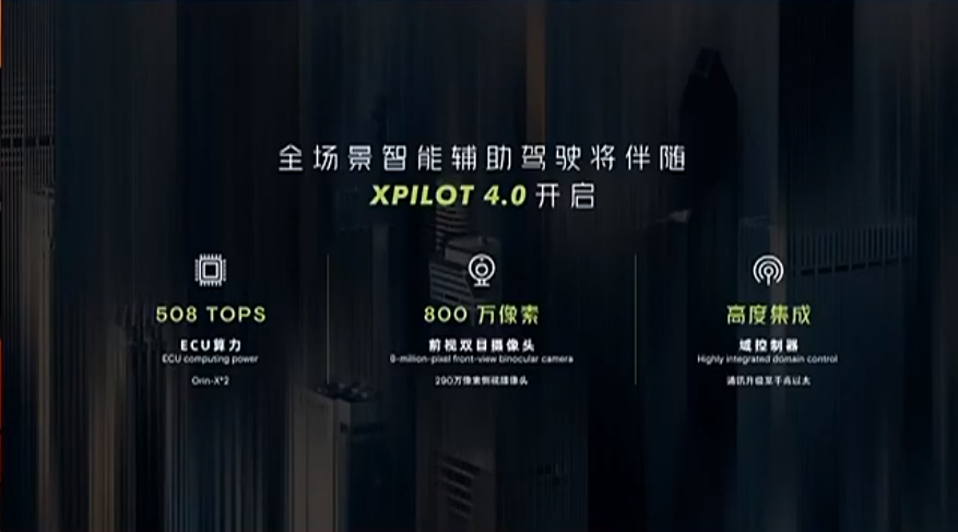 2022年年底开始,小鹏汽车所有的新车都将搭载支持XPILOT4.0的硬件系统。小鹏汽车则将于2023年上半年推出XPILOT4.0的软件和服务,其将实现点对点的全场景智能辅助驾驶,驾驶员只需进行安全监测。