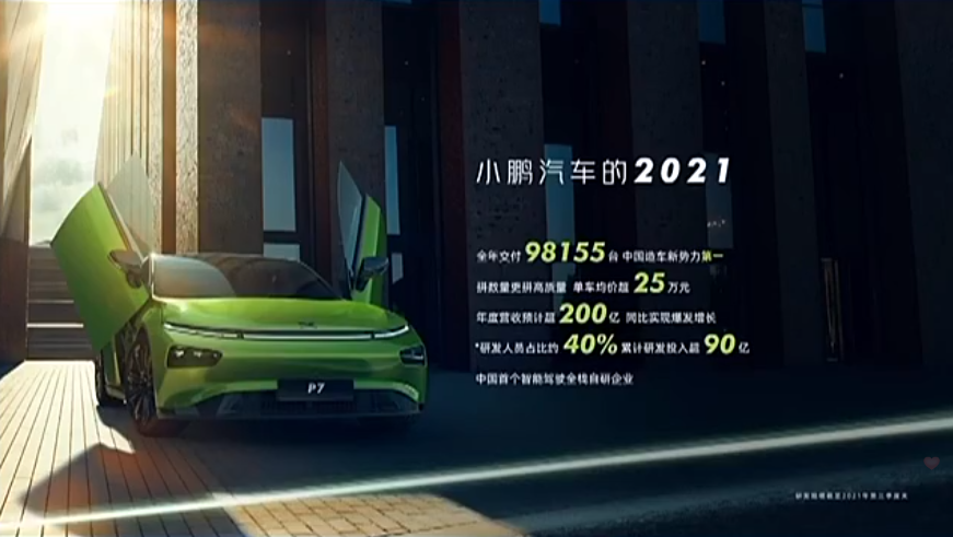 2021年小鹏汽车实现收入200亿元以上,同比增长了300%。何小鹏表示,目前小鹏汽车交付均价为25万元,并将继续上行。“我相信中国乃至全球,智能汽车的主力价格带将在20-40万元。"