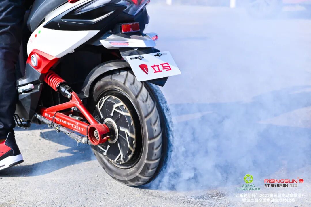 不同于昨日的封闭式赛道,今天举行的公路赛的路况更加复杂多变:沿途不仅有急弯,还有碎石、泥沙等随机路况,更加贴近用户的日常日行情况。在这样的赛道上比赛,无疑将更加直观地反映出车辆的性能情况。在上午的比赛中,电摩和电轻摩两组别每6辆车一组,总里程约5公里,进行公路赛。随着赛道的延长和路况的复杂,公路赛显得愈发刺激。在裁判员挥动旗帜的那一刻,每位运动员速度出发,凭借自己的技术与实力,直线加速、超级弯道……上演了“激情与速度”。立马车手在休憩之余,为全场观众进行了电动车特技表演,引得全场振臂高呼。![]()