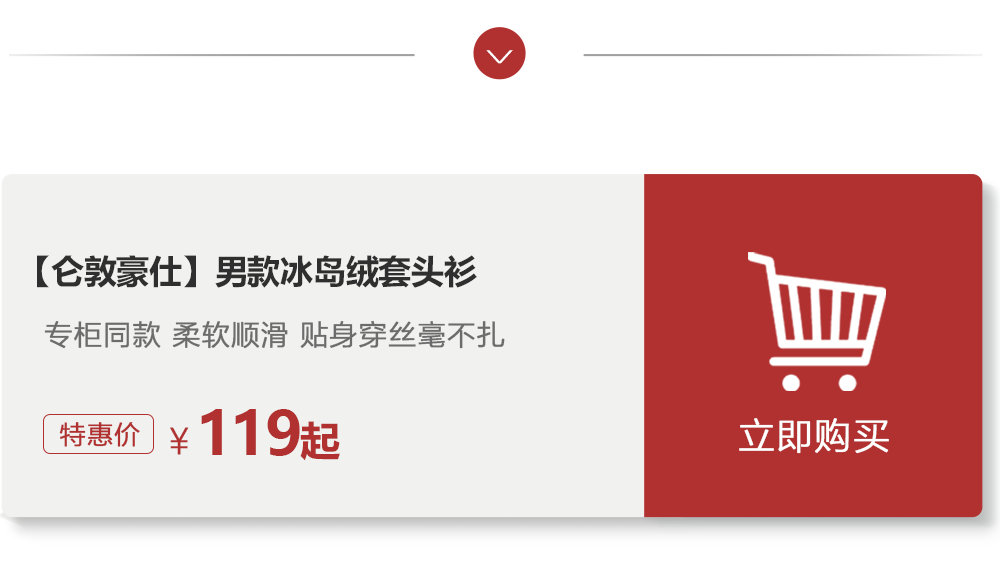可别以为清仓,就全是卖剩的瑕疵货、残次品,新鲜出炉的报告上赫赫写明:面料成分为100%绵羊毛,大家尽可买得放心。另一款科技面料 - 冰岛绒男士套头衫更低至119元![]()