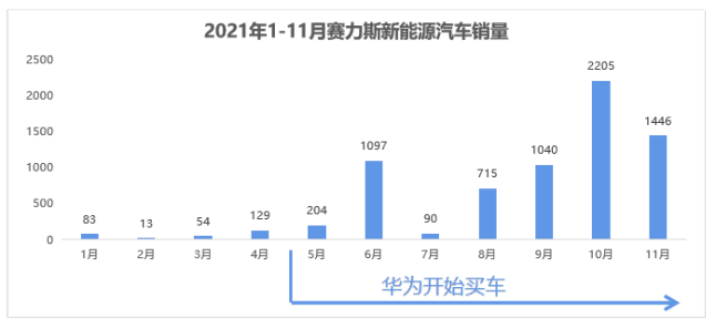 华为卖车确实奏效,今年4月之前,赛力斯月销量大多在100以下,但自从5月开始,赛力斯的月销量竟然三次突破1000辆,10月甚至达到了2200辆,算得上立竿见影。