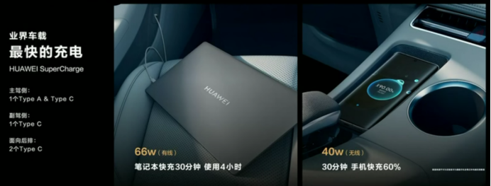 “我们拥有业界车载最快的手机充电接口,功率达到66W......中控屏占比达到了90%。”(Ps:真不愧是卖手机的!)
