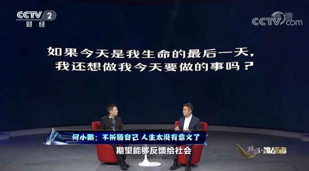今年年初,何小鹏成为了央视《遇见大咖》第五季采访的第二位车企老板。从媒体的角度讲,他和李斌、李想确实算得上是在这次新能源智能化浪潮中典型的“观察对象”,整个社会对于这三个人的猜想、责备与期待几乎占据半个互联网。上次我就吐槽过作为上市公司老板的他,在带着小鹏汽车极速狂奔的时候,一件毛衣却穿了五年的故事。而上周末,何小鹏再次成为央视另一档“长寿”节目的“观察对象”。如果要说这次《对话》里的小鹏汽车和何小鹏,相比年初《遇见大咖》记录的有什么不同,我想最大的变化莫过于:2019年及之前的何小鹏需要带着小鹏汽车活下去;2020年凭借P7,总算是活下来了;而2021年的何小鹏则在可劲儿“折腾”。用何小鹏自己对主持人说的话来讲就是:“不折腾自己,人生就太没意义了。”![]()