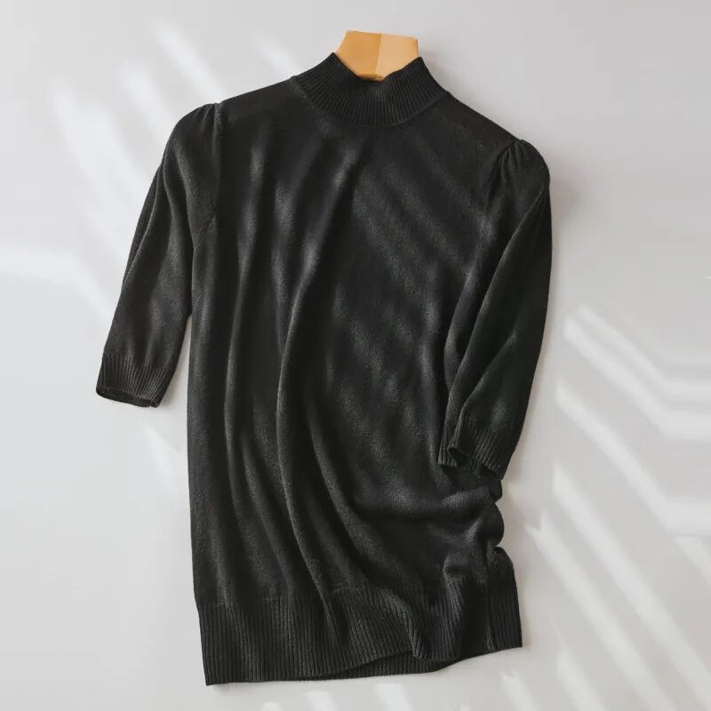 半高领款大概到脖子1/3的位置,修饰脖颈长度,不会担心显憨憨,上身温柔有加,又很显精气神。