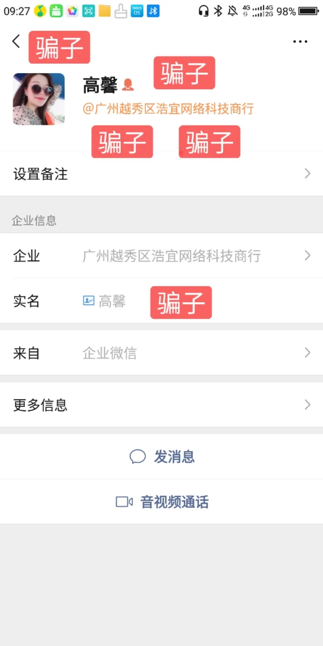 经调查,是企业微信昵称为“高馨”,公司认证为“广州越秀区浩宜网络科技商行”的人员未经我司合法授权,宣称是乐行天下官方活动,厂家让利推广,要求把加审核员并邀请进7个40人以上微信群就能领取平衡车,然而用户在完成指定任务后并不会收到指定奖品,该活动还会收集用户的电话和地址等个人信息。
