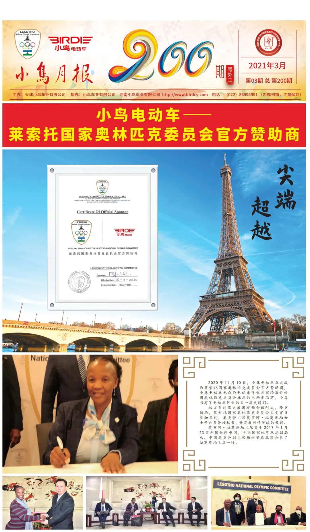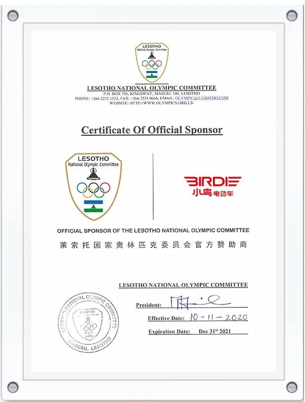 小鸟电动车正式成为莱索托国家奥林匹克委员会官方赞助商,小鸟电动车也成为电动车行业首家经准许使用奥林匹克委员会标志的电动车品牌,小鸟书写了电动车行业的又一历史时刻。