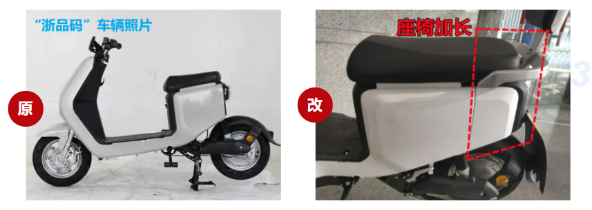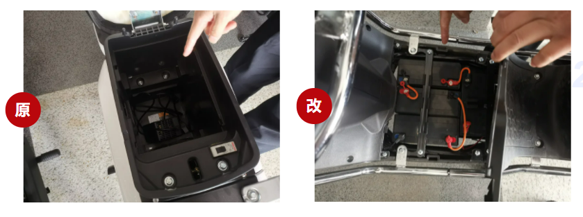 二、李某私自将应安装在座椅下的电池,改装到脚踏板位置。