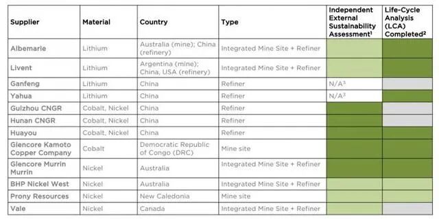 从名单来看,为特斯拉供应锂电材料的中国供应商为赣锋锂业和雅化集团;钴、镍材料的中国供应商则包括贵州中伟公司、湖南中伟公司和华友钴业。