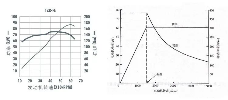 汽油发动机的特性是,低速低效,高速高效。而电动机的特性恰恰于此相反,低速高效,高速低效。