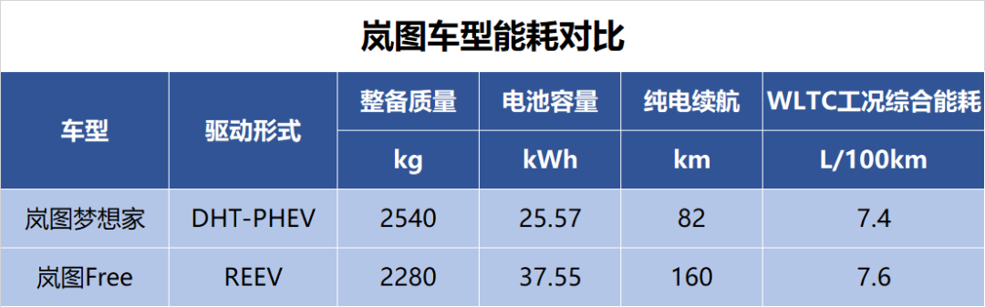 纯电续航更短,车重更重,但岚图梦想家的能耗水平更低。