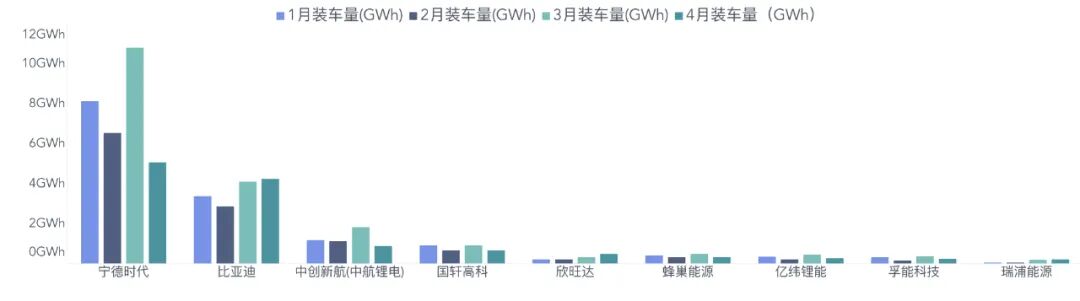 4月动力电池的数据,大家不要只看宁德时代和比亚迪互掐的热闹。