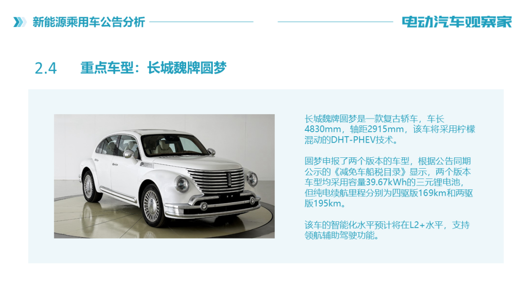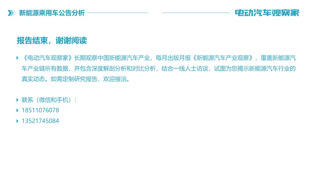 《电动汽车观察家》对该批次公告进行观察分析后,制作《新能源乘用车公告分析》PPT,免费提供下载阅览,下载链接为: