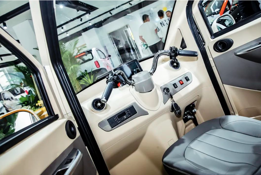 盛昊T8采用了首创全自动一体成型,外壳采用了强化的塑料件,防腐耐用,底盘主梁采用一体式加厚管材,使得整车更为扎实耐用。座舱内部采用了优质环保软包材质,中控台标配可双界面切换的液晶大屏,方向盘是按键操控台,八键科学排布,科技感十足。![]()