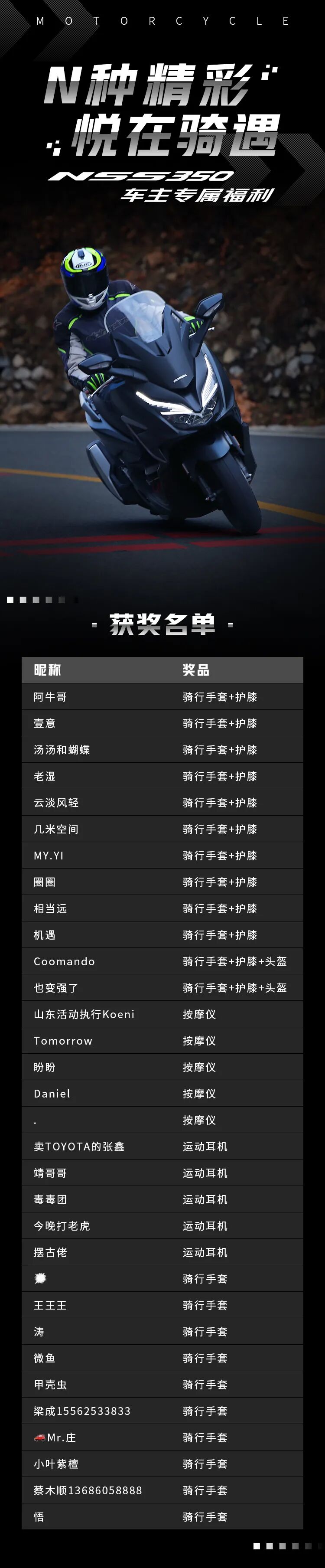 “N种精彩 悦在骑遇”NSS350车主专属活动获奖名单来了!