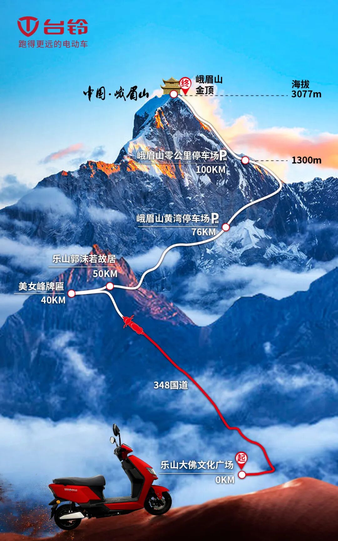 本次挑战活动在四川、贵州、重庆电视台等数十家媒体和活动直播间里上百万人的见证下,以及在乐山公证处的全程监督和审核下成功完成。登顶峨眉山的极限挑战活动是由骑手驾驶上述三款新产品并搭载一名乘员的情况下全速骑行,从乐山大佛出发在行驶4小时后顺利到达峨眉山顶,全程126公里,刷新了双倍负重、全速骑行的里程记录,雄证了台铃电动车磅礴的动力和超远的续航能力。