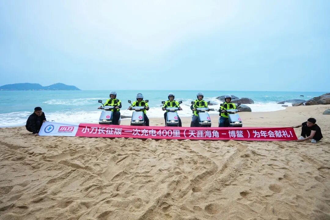 在扬水成冰的漠河,小刀长征版凭借航天科技的实力刷新极寒续航纪录,在铺满积雪暗冰的林间、湿滑陡峭的爬坡路段、万里冰封的黑龙江江面、狭窄的道路······向亿万用户展示小刀产品强悍的耐寒特性,成功突破一次充电400里,也用惊人的续航成绩为广大用户的冬季出行带来更优选择!小刀的动力之路,精彩从未停止,经历过零下30℃的考验,就想尝试新的挑战!为博鳌年会助威,小刀长征版骑行团队自三亚天涯海角出发,途经三亚小刀旗舰店、北纬18度、分界洲岛、铜铁岭、兴隆热带植物园,成功会师博鳌亚洲论坛会址。“一次充电400里”不只是一句口号,小刀将其付诸实践,运用于产品。在产品打造上,小刀始终保持对技术创新的执着态度,不仅为产品融入航天科技基因,赋予更多价值,更不断引领行业技术革命。作为中国航天事业合作伙伴,小刀与中国航天强强联合,运用先进的航天技术刷新行业科技的新维度,小刀长征版5.0增程系统应运而生。航天恒磁长征版5.0电机、石墨烯5.0电池、长征版智能三合一5.0控制器等七大核心部件的全面升级,让小刀长征版系列产品动力更强,续航更长,抓地力更强,更完美地适应各种路况。续航里程更是实现“一次充电300里”向“一次充电400里”的跨越式升级,凭借孜孜不倦的技术突破与精工智造信念,小刀攀登续航新高峰,打破续航焦虑,开启“大里程时代”。小刀不余遗力地提升产品性能、品质、竞争力,雄厚的产品实力也得到市场的认可和青睐,巨大的品牌优势、产品优势,必将成为小刀占二元目标的关键力量。· 【小刀长征版 一次充电400里】参照实验室报告数据。实际行驶里程因骑行条件不同可能存在偏差,以上数据仅供参考;· 本页面所有图片仅用于品牌展示,如有疑问或使用需求,请联系本平台。