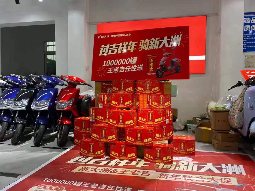 王老吉近3000个超市、大卖场等消费终端以及三大线上旗舰商铺,通过品牌露出和线上线下联合促销以及抽奖等形式大力推广新大洲电动车品牌。新大洲利用其强大的渠道力,辐射全国近500城市近5000个的消费终端为双方品牌发声,并在活动期间宣布送出百万罐王老吉红罐凉茶。
