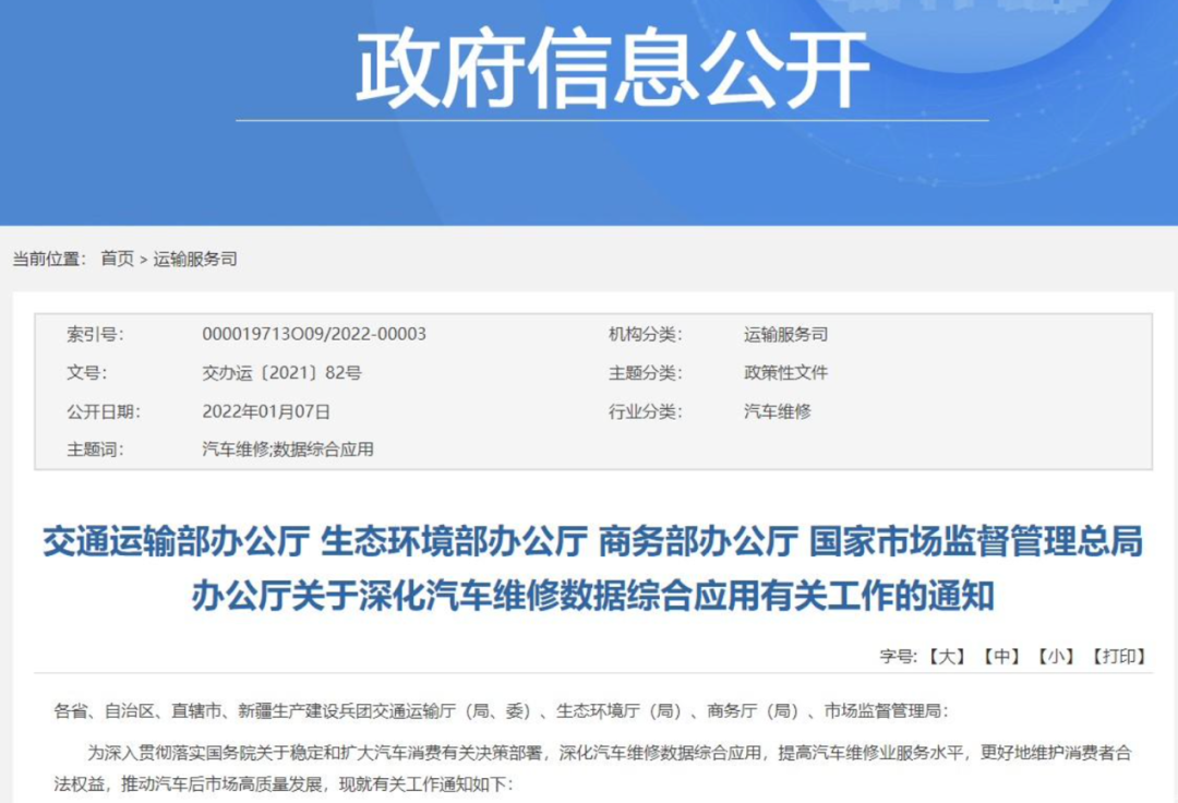 近日,交通运输部联合生态环境部办公厅、商务部办公厅、国家市场监督管理总局办公厅发布了《关于深化汽车维修数据综合应用有关工作的通知》。公益属性的增加、数据安全管理的加强,都推动了汽车维修行业的可持续发展特性。对我国汽车后市场起到了良好的支撑和促进作用。