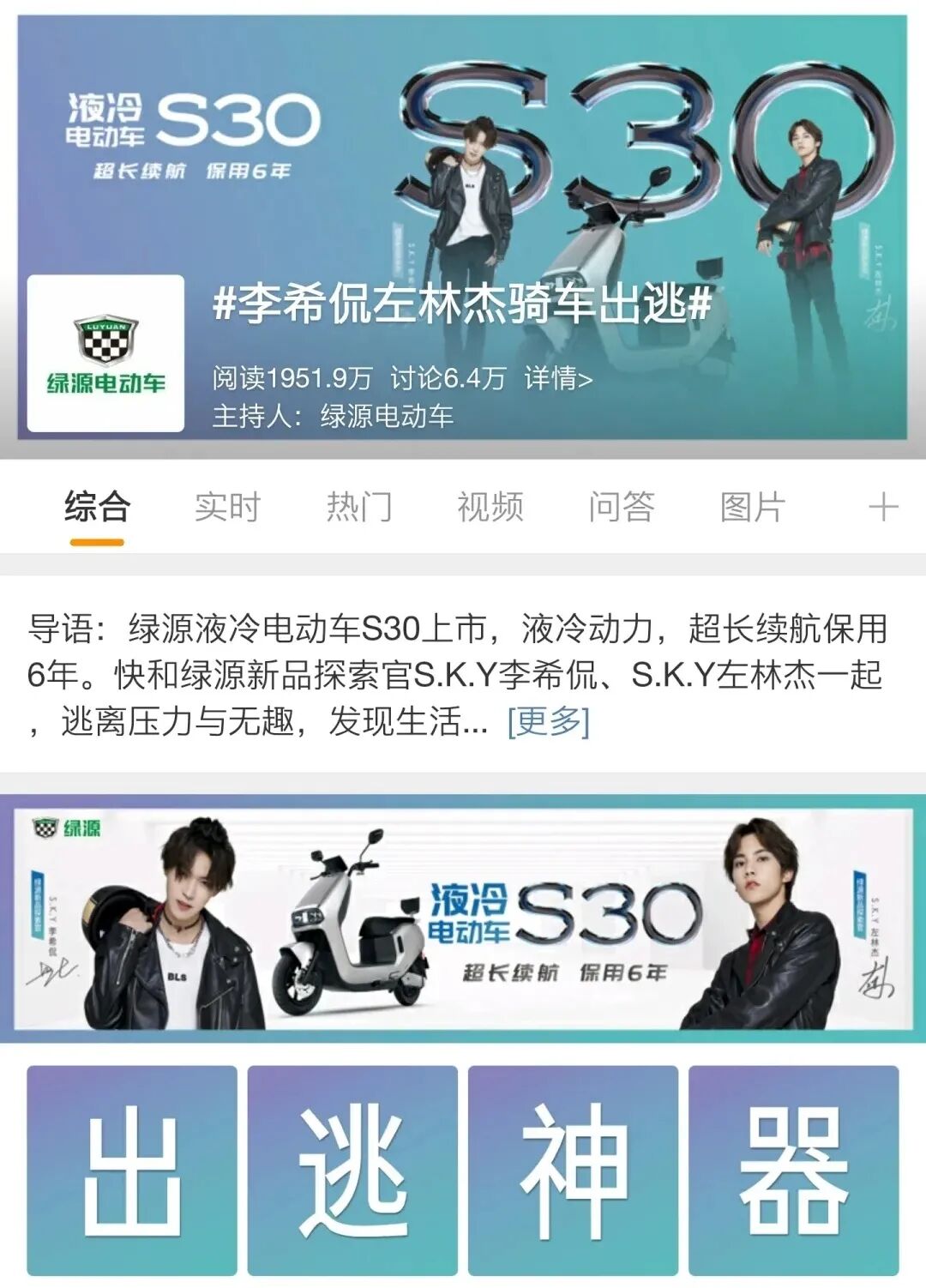 此外,在《向往的生活5》中,国民兄妹组合——彭昱畅教张子枫骑绿源S30,也登上了热搜榜,让绿源着实又火了一把。