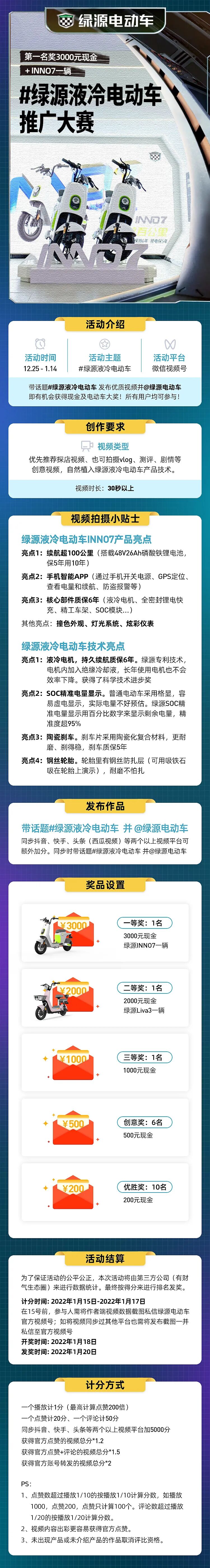 一等奖:3000元+INNO7!所有人可参加,绿源推广大赛即将开始!