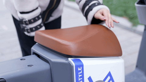 首先是这个舒适坐垫,可别小瞧这个坐垫。它的内部带有重力感应,随坐随走,当感知不到重量时会自动锁车,提升行车安全性。
