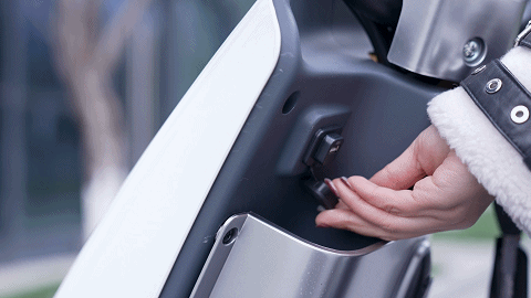 还有隐藏式USB充电口,搭配前置深度储物格,手机可全覆盖放入,让我们边骑边充电,再也不担心手机没电啦。