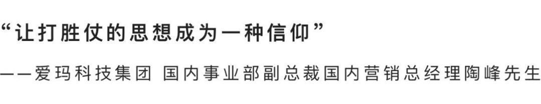 没有打不赢的市场,在华为讲师为我们分享华为优秀经验之后,爱玛科技集团国内事业部副总裁国内营销总经理陶峰先生,在现场就打得赢的产品、打得赢的渠道、打得赢的方法3大支撑点做出旺季营销规划。