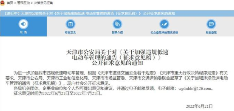 从去年低速电动车新国标无限接近于出台,但却没有尘埃落定,低速电动车的何去何从始终是行业的一块心病。近日,天津市公安局、工业和信息化局、市场监管委、交通运输委联合起草了针对低速电动车的《关于加强违规低速电动车管理的通告(征求意见稿)》,于6月21日-7月21日征求意见,再一次让行业聚焦低速电动车,那么,在这份文件中透露出哪些趋势呢?1、禁止产销:天津禁止产、销违规低速电动车,禁止违规低速电动车从事客运、货运经营。具体对象是指未经国家机动车产品主管部门许可生产,也就是企业没有机动车生产资质的三轮、四轮产品;未列入工信部《道路机动车辆生产企业及产品公告》,也就是没有工信部目录的三轮、四轮产品。2、设置过渡期。对于之前购买违规低速电动车设置过渡期(截止至2023年12月31日),过渡期后将严禁违规低速车上路以及在公共场所停放,违规将受处罚。有设置过渡期,但总体态度并没有变化,低速四轮的升级之路仍是大势所趋。
