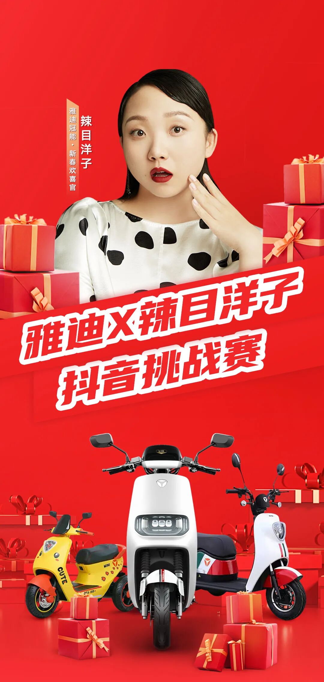 新春将至,全球电动两轮车第一品牌雅迪再曝大招,将携雅迪冠能·新春欢喜官辣目洋子及日活用户超6亿的抖音平台共同发出寻找超级锦鲤的召唤,并将上线“大年三十档”抖音挑战赛,在亿万国人共享合家欢的美好时刻,为全球华人送上来自雅迪的专属幸福感,为虎年新年冠能!在中华民族五千年浩瀚的文化海洋中,春节一直是个象征阖家团圆的幸福符号。多年以来,始终心存用户的雅迪从未忘记在新春佳节之际给国人送上专属“幸福感”,甚至还在去年成为史上首个登陆央视春晚的电动车品牌,在大年三十的晚上为全球华人送上了新春祝福。在今年新春到来之际,雅迪抢先放出组合大招,不仅将为全球华人送上诚挚的新春祝福和福利,更将通过对重要节点顶级独家资源的抢占和极具创造力的用户活动设置,在虎年春节品牌营销大战中抢先出发,构筑起堪称碾压级的品牌势能,进而掀起风靡全国的新春热销风暴。作为14亿中国人眼里最为重要的节日,春节一直是各大品牌的营销必争之地。比起很多品牌通过硬性资源抢占的方式追求简单的曝光量提升,身为全球电动两轮车第一品牌的雅迪,在行业抢先发起高规格且极具创意的新春主题活动,无疑是其品牌营销团队卓越的战略眼光、战机的把握能力和执行力的具象体现。通观整个系列活动的规划和设置,雅迪不仅在春节品牌大战的激烈背景下独占多个顶级独家资源,同时还通过其独具匠心的创意策划能力,打造出了极具年味的品牌文化输出、节日营销和用户互动模式。众所周知,忙碌了一年的国人过年就图个团圆和欢乐。在这样的情感诉求下,能够为大家带来欢笑和感动的喜剧无疑是最好的治愈良药,因而也就造就了喜剧演员近年来愈发受到国人欢迎,其中顶级喜剧演员则更是家喻户晓。作为新生代顶级喜剧演员的代表,辣目洋子极具喜感的萌系长相自带亲和力,通过活泼而富有张力的表现收获了大量国人的喜爱,更受到了年轻人的追捧,堪称是近年来的现象级喜剧演员之一。在这个新春假期,雅迪将携手辣目洋子一起,面向全球用户发出极具民族特色的“超级锦鲤召唤”,用耳熟能详的新春元素为国人送上惊喜福利。同时亦将借势风靡全球的抖音平台发起“大年三十档”抖音挑战赛,与全球华人进行一场充满欢笑和幸福感的有爱互动,值得注意的是,平均日活用户数量超6亿的抖音平台是当下全网流量、用户数量最高的社交平台,并且实现了对全年龄段群体的覆盖。从往年的情况来看,春节期间抖音将会迎来全年的流量峰值,向来都是各大品牌必争的重点资源和时段。雅迪在如此激烈的竞争中能够得到抖音平台的鼎力支持,也直观体现了雅迪身为世界级品牌的实力和影响力。可以预见,在雅迪X辣目洋子X抖音挑战赛的三大顶级IP的号召下,将会有大量国人加入到此次雅迪新春活动中来,用极具年味的互动方式营造出吉祥红火的新春氛围。而作为发起方的雅迪,也将在春节期间实现极具温度的强力曝光,这与部分品牌仍在模仿雅迪过往案例形成了鲜明的对比,注定将形成通达整个新春周期的品牌势能碾压。除了在活动策划上极具年味,雅迪为国人准备的锦鲤大奖也同样承载着浓浓的中国味。据了解,雅迪在设置超级锦鲤大奖时不仅尽显豪气,而且分外用心。由全球史上最畅销的单一电动车系列雅迪冠能领衔,雅迪电单车、休闲三轮车以及童车产品倾力助阵的锦鲤大奖阵容,能够完美满足全家不同群体不同场景的出行需求。而这次雅迪遍及电动出行多个细分领域产品的“全家福”展示,也是对雅迪全球顶级智造力的集中彰显。对愈发自信的国人们来说,能够在新春期间收到由优秀民族智造品牌送上的超级锦鲤,无疑是非常幸运和自豪的事情。众所周知,风靡全球的雅迪冠能二代系列已经被公认为划时代意义的产品。不仅具备“一次充电 多跑一倍”的卓越长续航能力,同时也兼具超强的动力性能。以超级锦鲤大奖中的雅迪冠能二代E8为例,这款“神车”搭载雅迪TTFAR石墨烯三代电池,采用液控耐寒黑科技,在电池中加入防冻电解液,能够有效提高电池反应活性,在极端低温环境中经受72小时的连续极寒挑战,性能依旧强劲,彻底解决了“冬季电池容量低”这一困扰行业多年的难题。不久前在中国最冷小镇呼中镇举行的极寒挑战中,冠能二代E8更是在冰天雪地、崎岖道路和极寒天气构成的“三重极限考验”下,展现出澎湃的动力、良好的操控性和低温环境下的超强续航能力,最终交出了一次充电超200公里的惊人成绩。如此卓越的“神车”,也将为国人在春节期间购置年货、走亲访友提供更加安全、更高效率的出行幸福感。同时,雅迪身为全球电动两轮车第一品牌,也将在新春佳节之际充分发挥自身超卓的品牌影响力,力倡国人以实际行动过低碳春节,践行双碳战略目标下的全民责任。众所周知,雅迪的营销功力独步业界。相对于部分品牌依旧停留在“花钱赚吆喝”的阶段,雅迪早已经打通了品牌活动策划与数字化营销的壁垒,打造了完整的品牌营销闭环,最终形成高转化。本次新春活动,就是雅迪大师级营销操盘的又一经典案例。通过联动辣目洋子、抖音挑战赛等方式,雅迪面向全网狂送锦鲤大奖、电影票以及多项新春福利,势必将引起精准购车群体的积极参与,下载雅迪智行APP,不仅将持续引爆线上流量的井喷,同时也通过诸如购车红