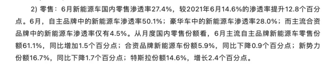 今年6月新能源汽车渗透率达到27.4%