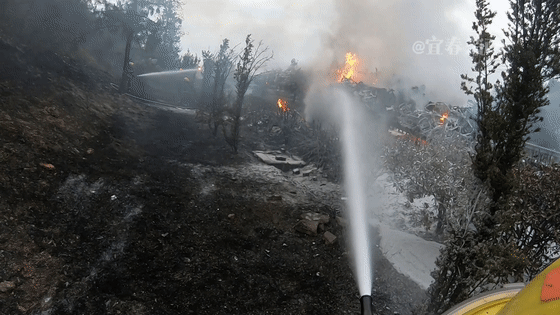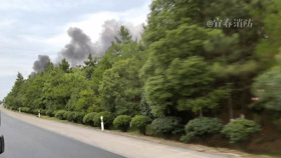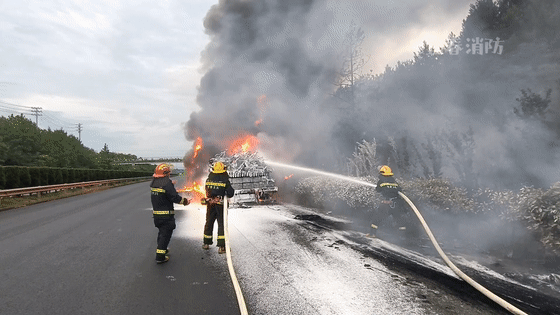 接警后,消防救援人员立即出动,现场浓烟滚滚,此时燃烧产生的火星,已将路边的草坪和树木引燃。