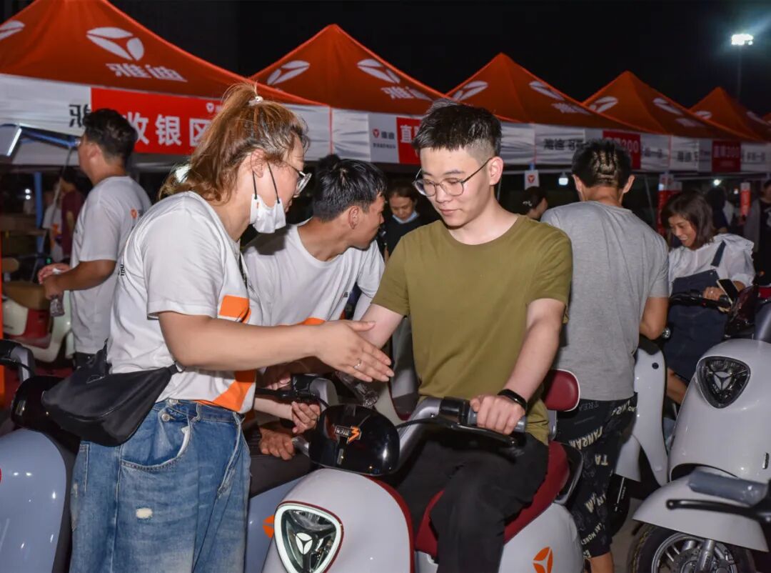随着雅迪冠能3中国行持续在全国各地的开展,无论是在雅迪门店,还是广场,随处可见人山人海抢购雅迪电动车的景象,尤其是刚刚上市的雅迪冠能3,咨询、体验的用户络绎不绝,补货的卡车首尾相接,拆卸的包装箱更是堆积如山,甚至有些户外广场到了晚上九、十点依旧是灯火通明,挤满了等待购车和付款的用户。