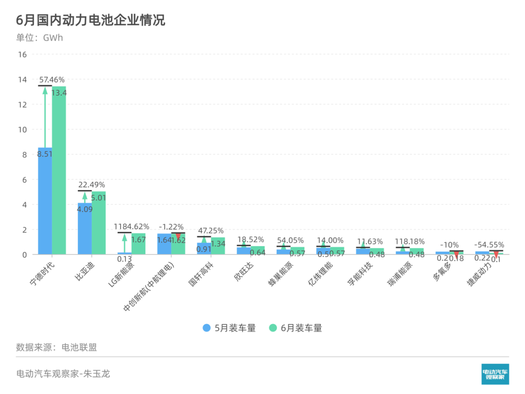 - 宁德时代从上个月的8.51GWh上升到了13.4GWh增加了57.46%
