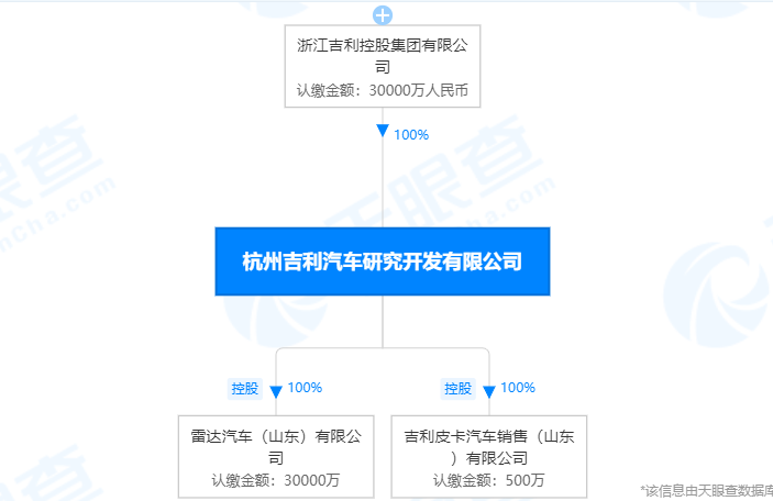 “雷达RD6基于浩瀚架构和吉利集团旗下的技术资源加持,是目前国内首款正向研发的,基于纯电平台所打造的皮卡产品。”易寒表示:雷达将RD6定位为“移动多元带电空间“。发布会和会后采访中,雷达官方非常有限的透露了一些RD6的产品信息。其纯电续航里程为600公里。相比之下,售价25.18-26.78万元的长城炮EV NEDC工况下的续航里程为405公里;6.5万美元(43.7万元)的美国纯电皮卡品牌RIVIAN车型R1T的综合EPA(EPA>WLTP>NEDC)续航里程为505km。易寒表示,雷达RD6在空间、驾乘舒适性和智能驾驶等方面相比国内其它纯电皮卡产品都有着更好的表现。他举例道,雷达RD6的前备箱空间超过了70L。后斗则支持在途在地的外放电功能,功率可达6KW,是目前市面上所有电动车厢后斗外放电的最大值。“我们不惜成本做到6KW的外放电是为满足户外场景中,对多元电器载荷的需求,可以接个投影仪,接个电磁炉,有时甚至可以接一些电焊切割等高功率电器的应用场景需求。“定位为户外品牌的雷达不仅在产品层面对标需求,还在服务和用户运营方面也尽力强化其户外属性。在补能方面,雷达汽CEO凌世权向《电动汽车观察家》表示:雷达首先会依托吉利自有的补能体系。目前,吉利已经建立了绿色慧联、万物友好和阳光铭岛三个涉及充电、换电和绿电循环体系的“基础设施”配套公司。第二,雷达会与第三方能源平台实现互联互通;此外,雷达还为用户规划了一些应急补能方案。在用户运营方面,“雷达将推出聚焦户外生活方式的生活精品子品牌——RADAR Weekend。发布会上,雷达宣布与全球化一站式露营装备品牌Naturehike挪客达成深度合作,双方的深度联名系列产品将在今年下半年亮相,并将联名开发多款户外露营拓展装备;与《国家地理》中文版发起“守护自然奇景”计划,秉承无痕的环保理念。雷达是吉利浩瀚平台的又一个外延产品,纯电和超级混动两种动力模式的布置可同时支撑两个蓝色吉利行动计划的落地。但雷达对吉利又不止于此。凌世权向《电动汽车观察家》表示:雷达品牌是与吉利汽车其它品牌并列发展的。“我们雷达汽车是吉利新能源战略的一个重要组成部分,丰富吉利汽车产业链布局;(与吉利汽车其它品牌)相比,我们主要是针对于多元户外去打造产品属性和服务特性。”从组织架构来看,雷达品牌并不隶属于吉利汽车。“雷达汽车(山东)有限公司”与“吉利皮卡汽车销售(山东)有限公司”由“杭州吉利汽车研究开发有限公司”完全控股,再向上一级则直接是浙江吉利控股有限公司。主导过吉利博瑞、博越、星越,领克01、09开发的凌世权,是杭州吉利汽车研究开发有限公司的法人。雷达之前,大吉利体系下,吉利、领克、极氪、沃尔沃等一系列品牌的布局,仍是按照不同售价区间依次排布,覆盖各级市场的各个细分领域车型。雷达是大吉利体系内,首个从特定场景需求而非价格区间出发,组织产品和服务的品牌。这一打法,与长城的品类创新颇为相似。而凌世权从吉利控股旗下的研究开发公司出发,势必能从更高的维度调动大吉利体系内的各种技术和服务资源来支撑和打造雷达品牌。从这个角度来看,雷达也是大吉利品类创新体系模式的一次探索。而选择落地在皮卡市场,自然也是因为皮卡是目前稀缺的蓝海市场。中汽协统计的数据显示,2021年中国皮卡销量首次突破了50万辆大关,达到了55.4万辆,同比增长12.83%,占比中国整体汽车销量的2.1%。相比全球7%的市场份额还有相当的成长空间。而新能源皮卡产品才出现不久。外资品牌有通用、福特、大众,特斯拉、Rivian、博林格等车企发力。中国车企中,长城与上汽大通也都有产品进场。而且利好政策不断。2016年中国首次实行皮卡解禁试点后,先后有90多个城市放开、放松了对皮卡的限行政策。此外商务部还多次提出“加快取消皮卡进城限制”、“推动皮卡下乡”等政策。6月,武汉和天津相继发布了皮卡进城的政策。“打造首款纯电皮卡,是雷达汽车的第一步,后续动作才是市场竞争的资本。”雷达汽车官方表示,雷达汽车未来产品形态极有可能从出行工具延伸至全场景品类。始于皮卡,不止于皮卡,全面布局户外市场。