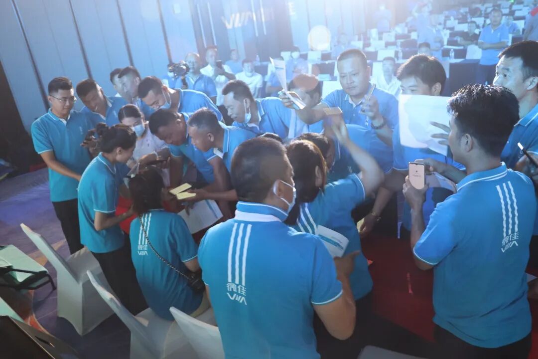 会议开始前,由微佳近年来自主研发制造的一众明星产品、尖刀产品整齐亮相,接受着经销商们的细细鉴赏,时尚的外观与内饰、卓越的品质和性能,搭载与时俱进的智能科技,呈现出无与伦比的的驾乘体验,这不仅体现了微佳至臻的匠心制造力和品质创新力,更意味着在旺季开启之际,微佳早已做足准备,以持续输出的产品力严阵以待,为终端赢利提供强而有力的保障。