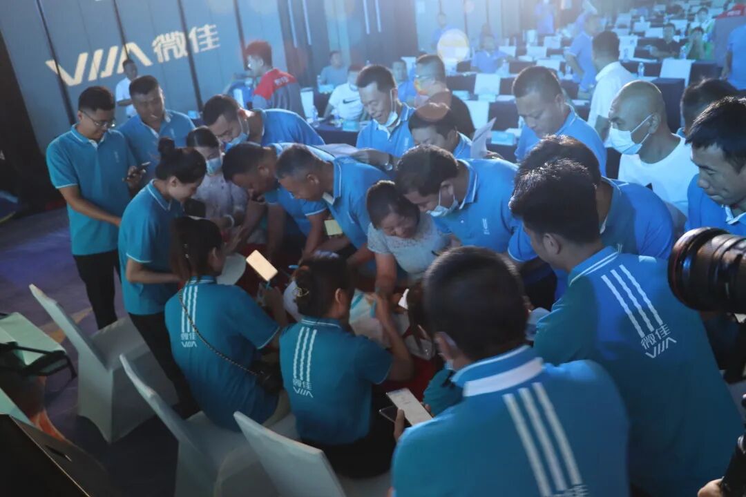 最后,微佳汽车华北战区总监王增强宣布了本次峰会的订货政策,再一次把现场气氛推向了高潮。此时,会议现场发生了有趣的一幕,政策尚未公布完毕,经销商们已经按捺不住激动的心情,争先恐后冲到签单台下单,这罕见的“抢单”盛况,足以证明,微佳高端微电轿新品类,的确是当下市场最具竞争力的龙头产品。