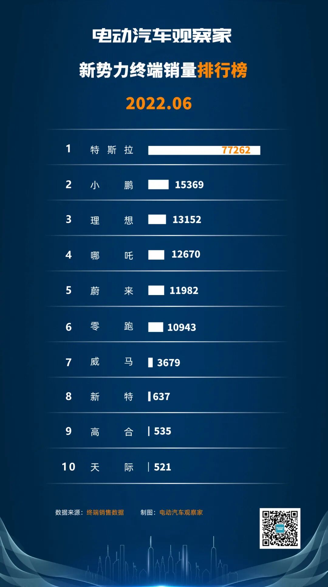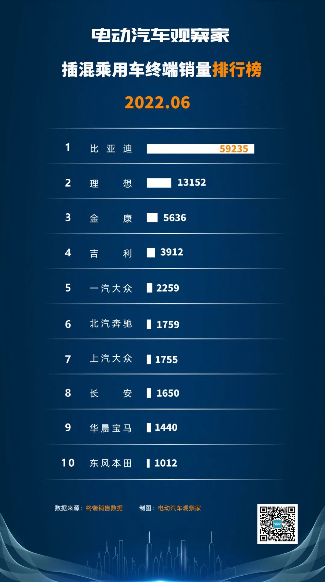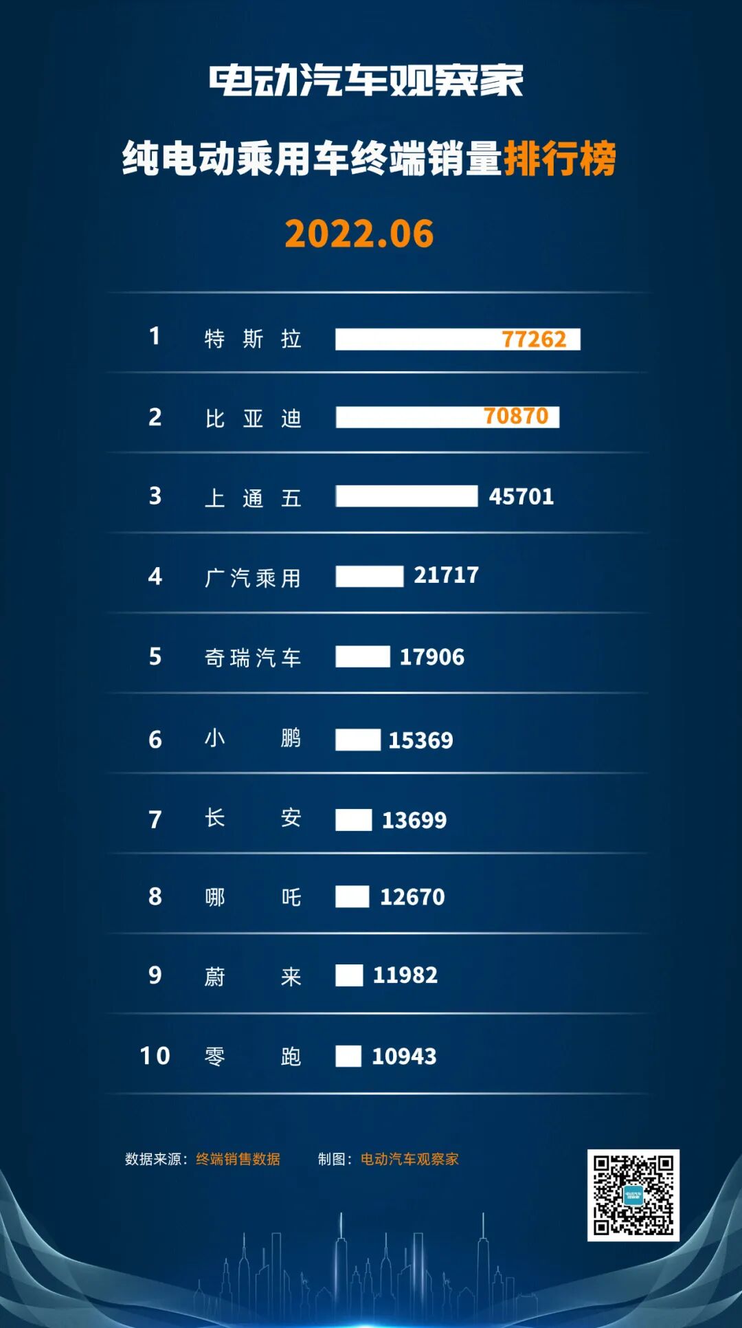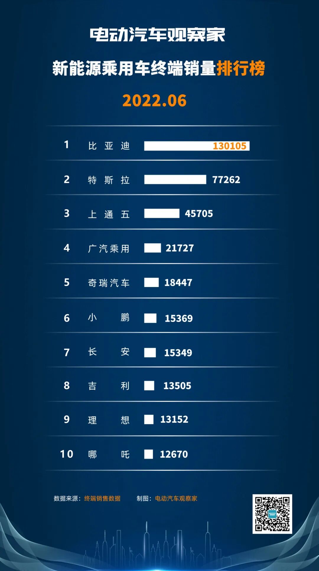 2022年6月终端销量排行榜:新能源、纯电动、插混、新造车势力