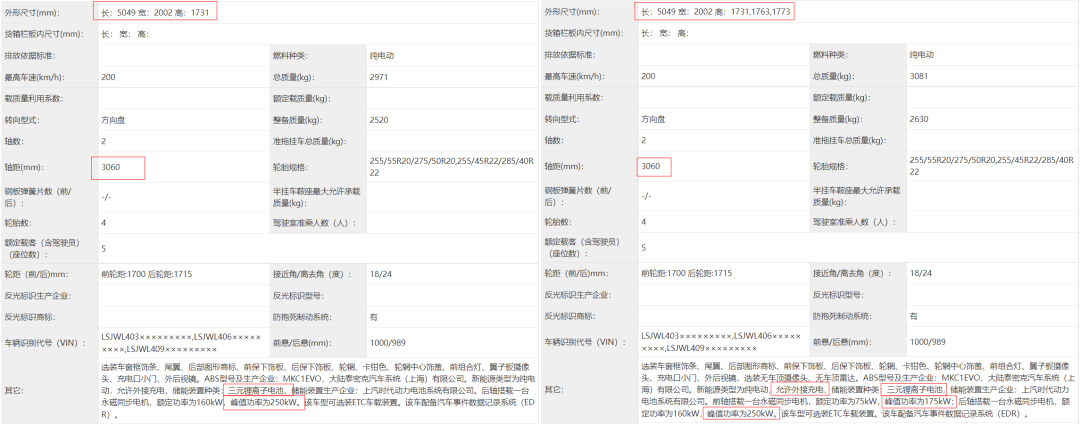 除此之外还有几款重磅的改款新车,如广汽AION Y Plus、领克家族的领克EM-P系列,当然也有一部分新玩家进入了新能源赛道,下面让我一一为读者介绍吧。哪吒S纯电版最大功率340kW,计划2022年内交付7月13日,哪吒S 纯电版登录工信部目录公示。哪吒S本次新增曝光了其最大功率,单电机版最大功率为170kW,双电机版最大功率为前170kW/后170kW。登录工信部目录的是一款白色车身的哪吒S,新车配置气动轮毂采用了隐藏式门把手和双腰线设计,并对后视镜进行优化在前翼子板处增加有额外的摄像头。尾部则采用流行的贯穿式尾灯,尾灯与后保气流分离的设计,实现了设计与低风阻的融合。车身尺寸方面,车长4980mm,车宽1980mm,车高1450mm,轴距为2980mm。电池方面,据哪吒汽车宣传,哪吒S将搭载其自研的“天工电池”,具备高能量、高续航、高安全、高稳定、高效能等特性。自主开发的HOZONEPT4.0恒温热管理系统,使得行车时保持电池恒温、停车后智能保温等功能;天工电池的主动监控系统,从系统安全、使用安全、电芯安全监测并预警风险。选装部分,可选装前格栅,雾灯盖板装饰条,轮辋,轮辋装饰条,发动机盖上饰板纹理造型,翼子板装饰件;部分车型还可选装前剪刀门,卡钳标识,左前/右前激光雷达,不带左/右雾灯盖板装饰条等。哪吒S的内饰等细节此前已经公布,哪吒S耀世版目前也已开启预售,提供增程、纯电两种动力类型,预售价33.88万元。关于预售订单量,哪吒汽车方面在7月1日时谦虚地表示“未过万”,这种表达方式按常理推测预售订单量应该是八九千台。从销量层面看,哪吒汽车已经跻身新势力第一梯队,哪吒汽车公布6月交付量,哪吒V和哪吒U共交付13157台,同比增长156%。2022年1月至6月,累计交付63131台,同比增长199%。智己汽车第二款量产车型即将到来,LS7登录工信部目录智己LS7 单电机版和双电机版 登上工信部目录,定位5座纯电SUV,高度还原概念车。其中双电机版车型的车身高度有三种尺寸,据官方此前消息,智己LS7将在下半年开启预售并正式上市。新车头顶采用了类似蔚来ET7的“瞭望塔”的布局,也是采用“激光雷达+两个高位摄像头”的方式,车侧面翼子板上配有摄像头,车头可以看到布置了常规的环视摄像头、感知硬件等。从概念车外观来看,智己LS7或将采用全景天幕,可为驾乘者提供更好的视野。车身尺寸方面,智己LS7 车长5049mm,车宽2002mm,车高1731mm,轴距为3060mm。值得关注的是,双电机版车高尺寸有三种,除1731mm外,还有1763mm,1773mm两种尺寸,这与车顶配置有关。本次公示的智己LS7 单电机版,无车顶摄像头、无车顶雷达;双电机版的车顶有三种选装,分别为“车顶摄像头、车顶雷达”;“无车顶摄像头”;“无车顶摄像头、无车顶雷达”共三种。动力方面,后驱单电机版搭载永磁同步电机,最大功率为250kW;双电机版,前后均为永磁同步电机,最大功率为前175kW/后250kW;电池则为上汽时代提供的三元锂电池。另外,该车允许外接充电。选装方面,智己LS7还是挺多的,车窗框饰条和卡钳色的样式各有3种,尾翼、后部图形商标、翼子板摄像头、充电口小门、轮毂中心饰盖、前组合灯、外后视镜的样式各有2种。高合HiPhi Z动力参数曝光,上市临近终登工信部目录7月13日,高合HiPhi Z 出现在了工信部目录公示上,动力参数曝光。该车目前已经开启预订,定价区间在60-80万元之间,具体配置和售价将在8月成都车展公布。高合HiPhi Z整车造型为机甲风格,车身配有整车环绕式星环ISD光幕系统,车顶设有激光雷达。值得一提的是,HiPhi Z配备了全速域后轮主动转向系统,但转向角度更大,转角左右摆幅可达13.2°(HiPhi X为12°),转弯半径仅有5.7米。车身尺寸方面,车身长宽高分别为5,036mm、2,018mm、1,439 mm,轴距为3,150 mm。动力系统,新车采用永磁同步电机,全时四驱,最大功率为75kW/247kW,最大扭矩为145N·m,搭载宁德时代提供的120kWh的电池包,CTP技术的支持下,CLTC工况下续航可达705km。底盘方面,前双叉臂式独立悬架,后五连杆式独立悬架。制动系统为液压制动、管路X型布置、前轮/后轮为通风盘式制动器,电动助力转向。高合HiPhi Z 有两种轮辋饰罩可选装,资料显示,22寸的轮毂配有高合独创的软性轮毂嵌件,保护轮毂免受剐蹭的同时还将带来不错的视觉效果。腾势D9首登工信部目录,动力信息首次曝光预计7月上市此次腾势D9的动力信息首次曝光,腾势D9单电机版电机最大功率170kW,双电机版前置电机最大功率170kW,后置电机最大功率45kW,都配备了最大净功率为96kW的发动机。对于腾势D9的外观我们都很熟悉了,外观采用腾势全新的设计语言π-Motion,将搭载DM-i超级混动技术和e平台3.0技术,拥有30项MPV细分市场首发、领先及独有的优势配置。整车尺寸长宽高分别为5250/1960/1920mm,轴距为3110mm。公示的三款腾势D9车型可选装前侧面雷达、后侧面雷达、中位置灯,标配小天窗及全景天幕。腾势D9采用7座布局,前2、中2、后3,第二排座椅靠背不可折叠在坐垫上,但是可以前后滑动但不能翻转,车内行李区纵向长度625mm。目前腾势官方公布最新的销量消息是自5月16日腾势MPV-D9发布以来截止到6月16日订单已经突破2万台。腾势D9共推出DM-i超级混动版、纯电版和创始版3个版本的7款车型。其中,DM-i超级混动版预售价区间为33.5-44.5万元,NEDC综合续航可达1040km;纯电版预售区间分别为39-46万元,CLTC纯电续航超过600km;创始版预售价66万元,限量99台。腾势D9已经开启核心城