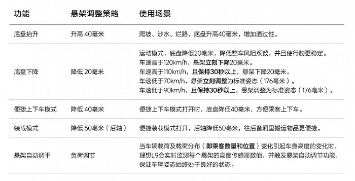 据理想汽车官方资料显示,理想L9标准姿态的空载最小离地间隙是176毫米,由于采用了智能空气弹簧,在爬坡、涉水和烂路这些路况下,底盘可升高40毫米。也就是说,在底盘抬升情况下,L9的最小离地间隙为216毫米。在冲过“超过20厘米的深坑”时,存在磕到底盘的可能性。