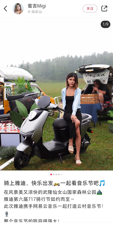 近日,雅迪第六届717骑行节在重庆仙女山燃情启动,并携手网易云音乐及众多新生代音乐大咖联袂打造首届云村营地音乐节,营造“人货场”的终极体验,构建矩阵式立体传播,完美再现效品合一的强IP输出。