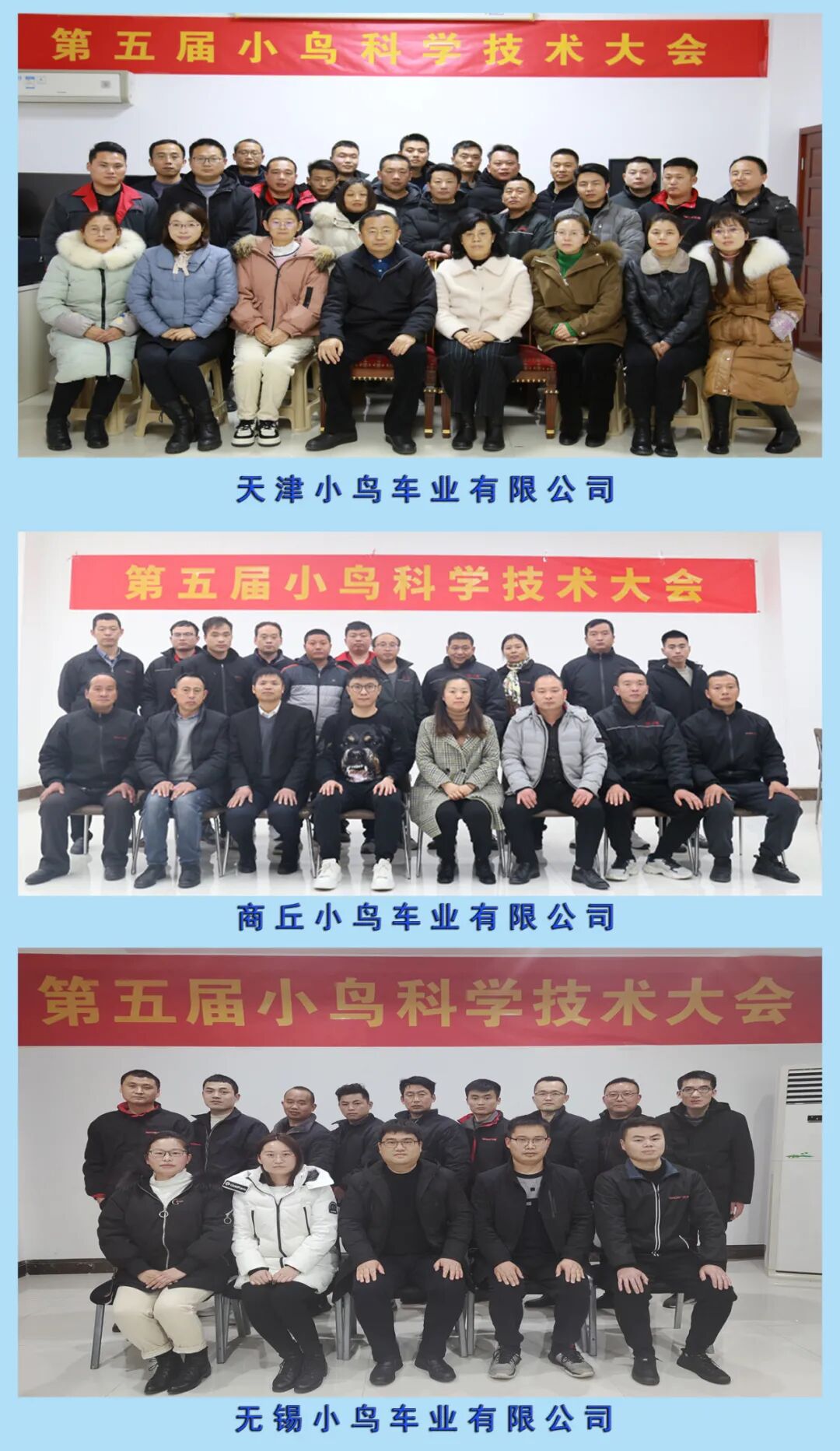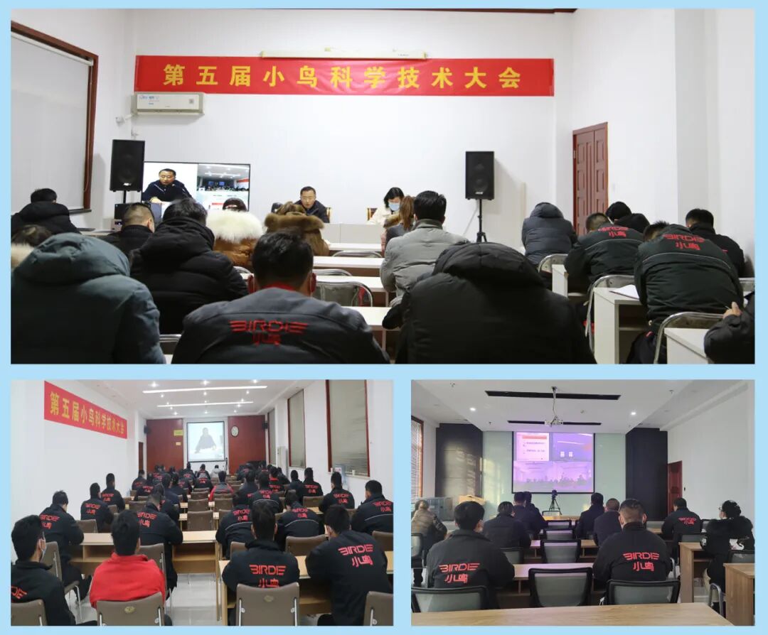 2022年1月11日,第五届小鸟科学技术大会隆重召开。天津、商丘、无锡三大公司研发、技术人员及各部门、车间主要领导通过网络互联的方式共同参加了本次会议。大会围绕“科技是第一生产力”的会议主题,以创新发展为动力,以智能自动化制造为基础,以国标高端新技术为方向,全面吹响新一年科技研发工作的号角。![]()
